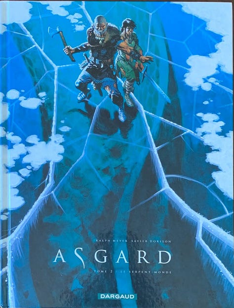 Asgard est un conte mythologique viking qui raconte l'histoire d'un handicapé destiné à être tué à sa naissance à cause de son infirmité. Epargné, il devient un formidable chasseur. Il est chargé de trouver et tuer un monstre marin, un Krökken, qui terrorise les pêcheurs. Cette traque dans le grand nord, alors que l'hiver arrive, sera pour lui et ses compagnons l'occasion de faire face à leurs démons intérieurs et de régler leurs comptes avec eux-mêmes. Le scénario de Xavier Dorison est jalonné de rebondissements. Il est porté par les superbes dessins de Ralph Meyer aidé de Caroline Delabie pour les couleurs. Découvrir