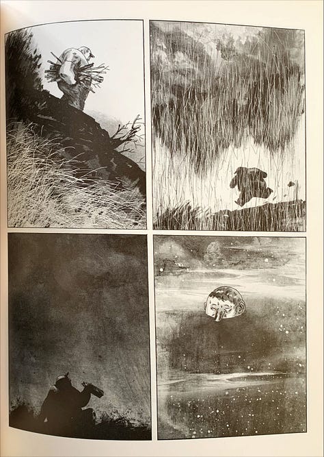 Les planches dessinées à l’encre de Chine sont exceptionnelles. Les personnages, souvent affublés de grands nez en forme de becs d’oiseau, mettent mal à l’aise. Les rendus de la campagne, eux, sont spectaculaires.