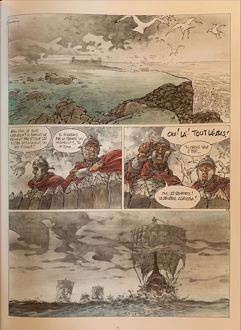 Inspiré des guerres entre Romains et Pictes, ce diptyque est avant tout un plaisir visuel, l’intrigue restant légère et les personnages principalement portés par l’action. Les aquarelles d’Hermann restituent magnifiquement l’ambiance des landes brumeuses. Découvrir