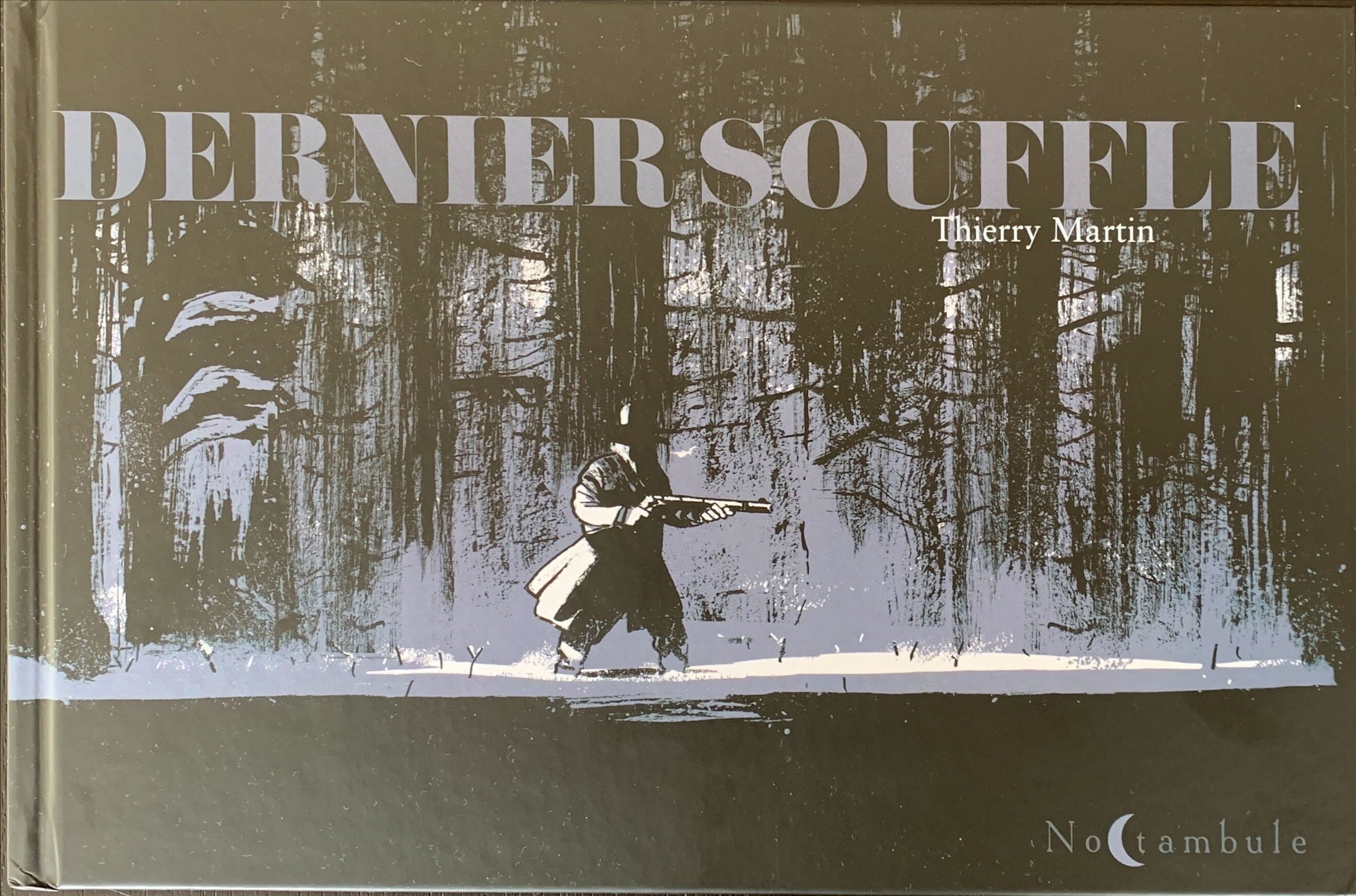 Dernier souffle est une œuvre unique: En 2018, Thierry Martin s'est lancé le défi personnel d'improviser une histoire de vengeance au rythme d'un dessin par jour sur Instagram. La version papier est un album à l'italienne avec une case par page, dessinée à l’encre de Chine et coloriée en gris à l'aquarelle. Il nous tient en haleine de la première planche à la dernière, racontant l'histoire sans qu'un seul mot soit nécessaire. Découvrir