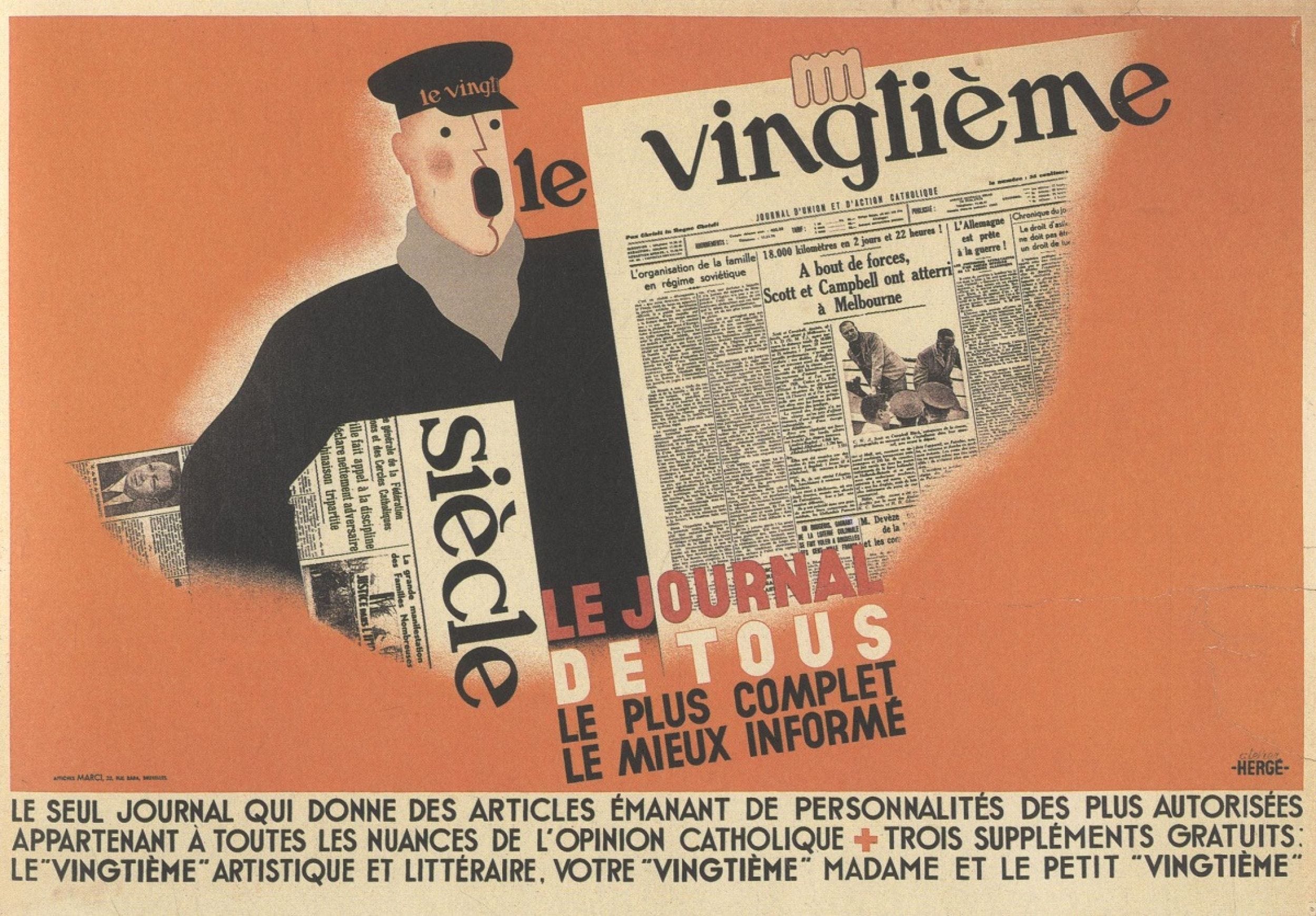 IllustrationsHergé: poster publicitaire (1934)Le Coin BDsJan 14, 2023ShareAffiche du Vingtième siècle, le journal de tous, 1934