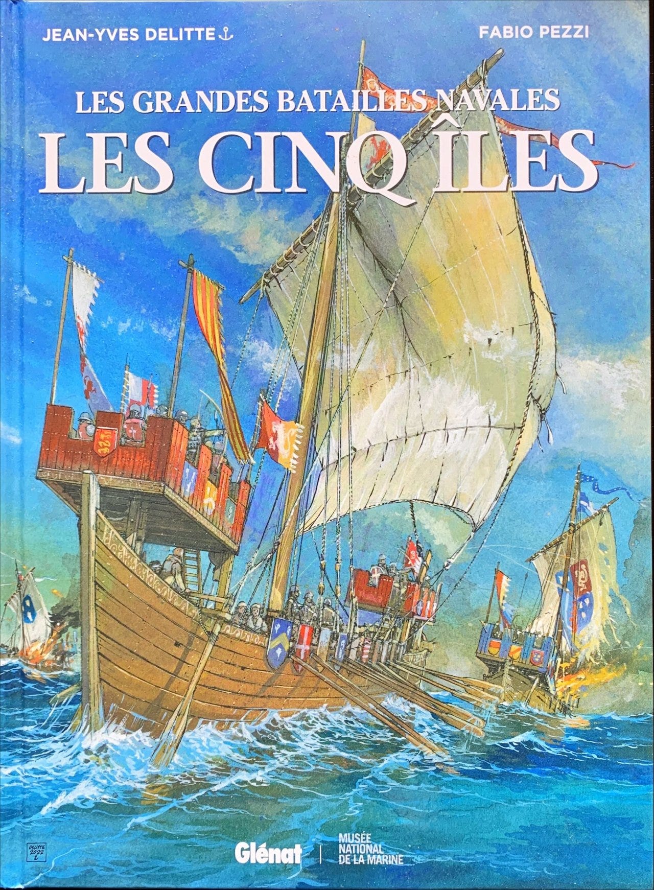 Au XIIIe siècle, l'Angleterre est à deux doigts de devenir française : le fils de Philippe Auguste a été appelé à la rescousse par les barons anglais en rébellion contre leur roi Jean sans Terre. Mais le vent tourne et il doit fait appel à une expédition pour renforcer ses positions. L'Angleterre va friser une nouvelle invasion... J'avais découvert Jean-Yves Delitte grâce à son excellente série Black Crow. Il s'est depuis lancé dans une nouvelle série pour raconter les grandes batailles navales. Remarquablement documentée, chaque BD inclut un dossier historique complet. Pour Les Cinq îles (20ᵉ tome), il s'est associé à Fabio Pezzi pour le scenario et Céline Labriet pour les couleurs. Le dessin est toujours aussi précis et sa passion pour dessiner les bateaux intacte. Découvrir