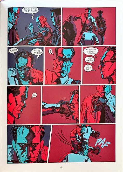 Serge Lehman et Frederik Peeters nous offrent un polar qui mêle la violence d’un Kill Bill à des moments débridés à la Pulp Fiction. Les planches de Frederik Peeters jouent sur une, deux ou trois couleurs très vives, créant des effets percutants qui plongent le lecteur dans une atmosphère singulière. Découvrir
