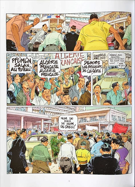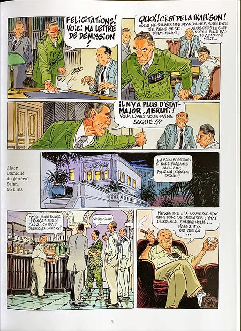 Un Général, des généraux nous plonge en mai 1958 lors du putsch d'Alger. Le dessin à la limite de la caricature de François Boucq rend les personnages parfois loufoques. Mais ne vous y trompez pas, le scenario de Nicolas Juncker est resté fidèle à l'histoire (même si c'est difficile à croire). Les compères, associés à Alexandre Boucq et Michel Brun pour l'encrage et les couleurs, nous tiennent en haleine du début jusqu'à la fin. Une BD à la fois drôle et profonde sur une page clef, mais souvent occultée de notre histoire. Découvrir