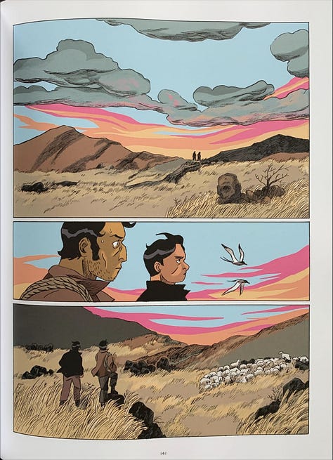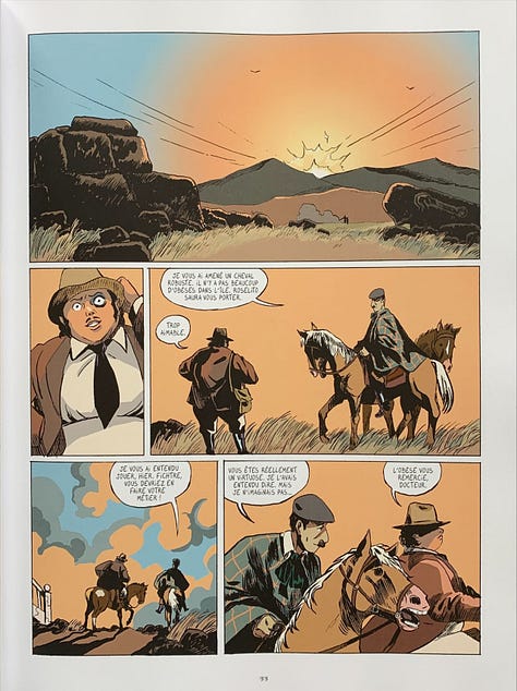Ce tome semble être le premier d’une série prometteuse. On est tenu par le scénario. Le dessin expressif de Thomas Gilbert rend superbement les caractères des personnages, tandis que les couleurs souvent désaturées donnent une beauté singulière aux paysages désolés de l’île. Découvrir